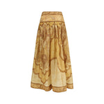 The Wanderlust Maxi Skirt by Zimmermann embodies a sense of fluid elegance and decorative romance, true to the spirit of the Resort Swim 2026 collection. Crafted from a refined cotton-silk blend, this full-length skirt features a mid-rise silhouette with a fixed waistband that defines the figure with ease. Gathered pleats throughout create soft movement and a graceful, flowing line. An invisible centre-back zip ensures a clean finish, while functional side pockets add practicality without compromising sophistication. Finished with placement embroidery and fully lined, this skirt is a refined statement piece designed for effortless, elevated dressing.