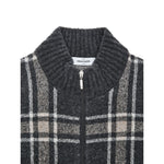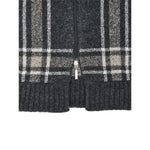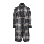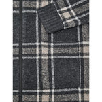 Gran Sasso Jacquard Bouclé Coat in Gray with Maxi Zip. In gray/beige check, front zip fastening, ribbed turtleneck, two front patch pockets, ribbed knit hem and cuffs. Composition: 87% Wool, 8% Polyamide, 5% Cashmere