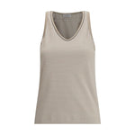 Brunello Cucinelli’s Striped Top is a refined garment with a feminine and modern design. Featuring a wide neckline with shiny Shiny Neck detail, it leaves the shoulders bare, giving elegance and lightness to the silhouette. The subtle stripes complete the look with a discreet yet sophisticated touch.