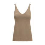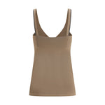 The cotton Top by Brunello Cucinelli is an elegant and refined piece perfect for sophisticated summer looks. The sleeveless design and V-neckline on the front create a feminine, lightweight silhouette, while the thin straps, embellished with the brand’s iconic shiny jewels, add a touch of luxury and originality. The structured round chest ensures a comfortable and defined fit. With a monochrome pattern, this top is easy to pair with a variety of outfits, while the regular fit ensures all-day comfort.