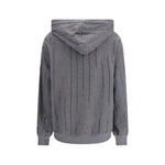 The cotton Sweatshirt by Brunello Cucinelli blends comfort and refinement in a piece with a modern, relaxed spirit. The hood and ribbed trims define a balanced sporty silhouette, while the dazzling chalk stripe sequin embroidery adds a subtle sparkle and signature sophistication. The long sleeves with cuffs complete the design, making this sweatshirt a perfect choice for effortlessly elegant casual looks and moments of refined leisure.