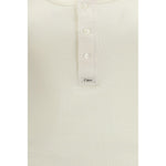 The cotton jersey Henley T-shirt by Chloé features a fitted silhouette enhanced by a ribbed texture and a wide neckline with front button detailing. Finished with a lettering logo patch and a tonal embroidered Chloé logo on the back, the long sleeves complete a refined and understated design that reflects the Maison’s feminine and contemporary aesthetic.