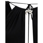 The stretch viscose Bodysuit by Marine Serre stands out for its contemporary elegance and sensual silhouette. Enriched with a jeweled Moon detail on the upper part, it features a round neckline, front cut-out detailing, and a tie-back closure. A sophisticated piece that blends refinement and modernity with the brand’s unmistakable aesthetic.