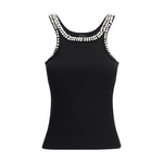 The Coriandoli Top by Pinko brings a refined sense of femininity through its ribbed cotton jersey construction. The deep neckline and straps are embellished with hand-applied crystals, rhinestones and glass details that illuminate the design with crafted brilliance. Ideal as an under-blazer piece for tailored ensembles or paired with statement denim, it adds a sophisticated touch that elevates any outfit with ease.