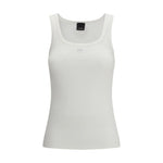 The ribbed tank Top with Love Birds logo by Pinko blends simplicity and character in a finely knitted cotton design with a close fit. The round neckline and ribbed texture enhance the silhouette, while the small centrally placed logo adds a subtle, signature touch. A versatile piece perfect for everyday wear, ideal both for outdoor moments and as a refined layering option under a formal blazer.