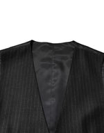 black striped waistcoat. Expertly tailored for a sharp, flattering fit, it features classic vertical stripes that enhance the silhouette while exuding timeless elegance. Perfect for pairing with a suit or dress trousers, this waistcoat brings a polished, luxurious finish to any formal or business ensemble, showcasing impeccable Italian craftsmanship.