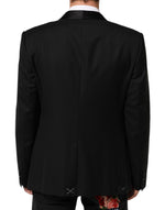 Gorgeous brand new, 100% Authentic Dolce & Gabbana GOLD blazer is tailored from luxurious black wool and elevated with a smooth shawl lapel. Accented by a bold single button, it features a sharp, structured silhouette that embodies refined Italian craftsmanship — ideal for formal evenings, galas, and special occasions.