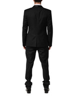 Gorgeous brand new, 100% Authentic Dolce & Gabbana black, two pieces suit is crafted from a virgin wool blend and features a jacket with a shawl lapel, long sleeves, a chest pocket, side flap pockets and button cuffs. The trousers feature a mid rise, a button and zip fly, a waistband with belt loops, side pockets, back pockets and a regular length.