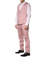 single-breasted 3-piece suit. Tailored from premium cotton, it features a sharp jacket, matching trousers, and a coordinated vest that adds depth and elegance to the ensemble. Designed with clean lines and a modern silhouette, this suit is perfect for formal occasions, business events, or any moment that calls for impeccable Italian craftsmanship. A timeless wardrobe essential that exudes confidence and style.