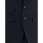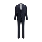 Dsquared2 Virgin Wool London Suit, consisting of jacket and pants. Wool blazer jacket, front button closure, three welt pockets on the front with flap, one slit pocket on the front, peaked lapels. Classic wool pants, front zipper and button closure, two welt pockets on the side, two welt pockets on the back.