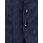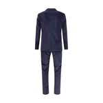 The ribbed cotton Suit by Gi Capri blends refined tailoring with a contemporary and textured aesthetic. The single-breasted blazer, featuring a button closure and back vents, offers a naturally structured silhouette. Peaked lapels and welt pockets highlight its balanced design, while the ribbed cotton fabric adds depth and character. The trousers, detailed with a front zip-and-button fastening, side slash pockets, back welt pockets, and belt loops, ensure a customizable fit. A versatile and elegant suit, ideal for expressing modern sophistication in everyday wear.