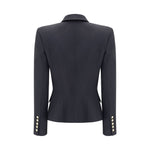 Balmain’s double-breasted Blazer is a sartorial statement piece, embellished with embossed buttons that recall the house’s iconic aesthetic. The crop design enhances the figure, while the wide peaked lapels lend a touch of decisive elegance. Completing the look are two welt flap pockets for the perfect balance of style and functionality.