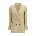 The Savannah Everyday Blazer by Blazé Milano is an elegant and versatile jacket, made from a refined blend of linen and silk and featuring peak lapels. The double-breasted button closure defines a structured silhouette, while the chest pocket, two front slit pockets, four buttons on the sleeves, and central vent at the back complete the design with refined sartorial details.