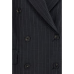 The double-breasted pinstripe Blazer by Ferragamo reinterprets menswear tailoring with a bold and contemporary attitude. Crafted from pure pinstripe wool cloth, it features a straight cut through the torso that defines a structured and clean silhouette. Flap pockets along the sides reinforce the classic character of the design, while its versatile aesthetic allows it to be worn as a coordinated look or styled with more fluid pieces for a refined contrast.