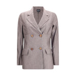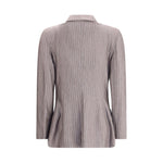 Giorgio Armani’s Double-breasted Blazer is crafted from a fine cashmere and silk striped jersey, combining elegance and comfort. Featuring peaked lapels and a four-button double-breasted closure, it has two small patch pockets on the chest and two wing pockets on the front for a sophisticated and timeless look.