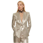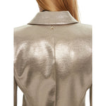 Patrizia Pepe gold metallic crepe jacket, peak lapels and single button closure, two front pockets and lined interior