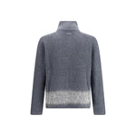 Dsquared2’s zip Cardigan combines comfort and style with a sporty, refined design. Crafted in ribbed knit, it features a double-slider front zipper closure, high collar and two zipper pockets. The mohair band adds a distinctive, textured touch, enhancing the garment’s contemporary aesthetic.