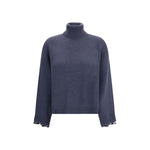 The cashmere and silk Sweater by Brunello Cucinelli embodies subtle elegance enhanced by refined detailing. The turtleneck gently embraces the silhouette, while the sequin embellishment on the sleeve adds a touch of soft luminosity. The blend of fine yarns creates a smooth and lightweight texture, perfect for expressing a modern and graceful femininity.