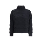 The high-neck cable-knit Sweater by Max Mara Studio, crafted from a luxurious wool and cashmere blend. The horizontal cable pattern adds a refined, textured feel, while the relaxed fit and soft volume ensure exceptional comfort. Finished with a crater collar and ribbed edges for an effortlessly elegant look.