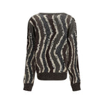Missoni’s Wave pattern boxy Cardigan is a garment with a modern and sophisticated style. Made of jacquard with the characteristic wave motif, it features a button closure and applied sequins that give shine and a touch of elegance, perfect for enriching any look with refined details.