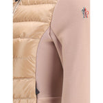 The padded zip-up Sweatshirt from the Moncler Grenoble Women’s collection is designed to provide warmth and comfort even in the most demanding conditions. Crafted from stretch jersey with padded nylon laqué front panels, it seamlessly combines technical performance with refined style. A high neck with snap button closure and water-repellent zip ensure protection against the elements, while zipped pockets and elastic jersey cuffs with tricolor trim highlight its sporty yet elegant appeal. Perfect for skiing, snowboarding, trekking, and hiking, it is the technical layer that merges functionality with contemporary design.