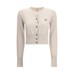 Bea crop Cardigan by Vivienne Westwood is a garment with iconic and contemporary appeal. It features a short design with a round neckline, long sleeves and front button closure. Completing the look is the distinctive Orb logo embroidery on the chest, a distinctive symbol of the Maison.