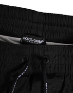 Absolutely stunning, 100% Authentic preowned Dolce & Gabbana men’s swim shorts black and white striped design and bold DG logo print. Features a mid-length fit, elastic waistband with adjustable drawstring, and stylish beachwear detailing.