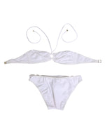 Gorgeous brand new, 100% Authentic Dolce & Gabbana two-piece swimsuit features a crisp white design accented with the signature Dolce & Gabbana logo. Complete with a matching top and bottom, it offers a sleek and modern look for stylish beach or poolside wear.