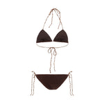 The Lumière Bikini by Oséree channels the brand’s signature glow through a refined and effortlessly sensual silhouette. The triangle top ties at the back with slender straps, offering a delicate, flattering shape, while the adjustable side-tie bottoms ensure a customizable fit. The monochrome design enhanced with all-over glitter delivers a luminous finish, making it an eye-catching choice for sunny days.