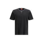 The T-madjust-tr T-shirt by Diesel features a crew neck with short sleeves and a regular fit, crafted from cotton interlock jersey for optimal comfort. Elasticated edges offer a more adaptable feel, while the ribbed triangle detail under the collar, with the metallic Oval D logo decoration, adds a distinctive touch. Organic cotton fibers ensure freshness and breathability, making this T-shirt ideal for a casual and comfortable look.