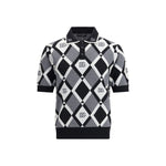 Dolce&Gabbana’s diamond knit Polo Sweater is distinguished by its refined geometric pattern featuring diamond motifs with integrated logos. It features a classic collar, a three-button closure and a ribbed hem, combining elegance and comfort in a versatile and contemporary garment.