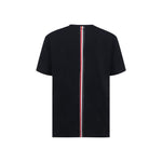Cotton T-Shirt by Thom Browne, ribbed crew neck collar, lateral slits with buttons, back stripe bar.