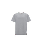 Cotton T-Shirt by Thom Browne, ribbed crew neck, side slits, iconic brand monogram patch applied to front.