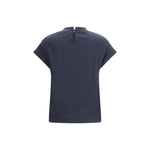 The cotton T-shirt by Brunello Cucinelli features a clean, understated silhouette elevated by the brand’s iconic detailing. The neckline is embellished with contrasting monili, while a back keyhole with button closure adds a refined touch. Finished with a regular fit, it balances comfort and sophisticated simplicity.
