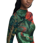 The Desigual JERS_TAPIZ_LACROI women’s long-sleeved t-shirt (model 25WWJF48) stands out for its artistic and sophisticated design. Made from 100% viscose, this top offers a soft, comfortable fit, ideal for year-round wear. The lightweight, silky fabric enhances the silhouette, while the bold multicolored floral print adds a touch of originality and contemporary style. The slightly high neckline and fitted sleeves give a modern elegance, making this garment perfect for both casual looks and more refined outfits. Pair it with high-waisted trousers or skirts for a versatile choice that lets your personality shine.