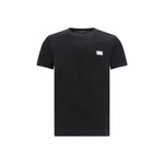 Cotton T-Shirt by Dolce&Gabbana, ribbed crew neck, metal plaque with the brand’s iconic D&G monogram engraved and applied on the back, oversize fit.