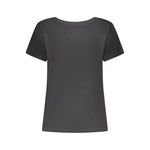 SHORT-SLEEVED T-SHIRT, WIDE NECKLINE, RHINESTONE APPLICATION, PRINT, LOGO
