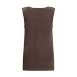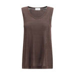 The crew-neck tank Top by P.A.R.O.S.H. conveys refined lightness through a blend of linen and viscose, creating a naturally fluid and semi-sheer texture. The essential design enhances the silhouette with subtlety, turning a minimal piece into a sophisticated and modern staple.