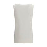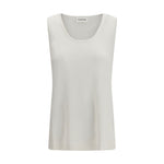 The crew-neck tank Top by P.A.R.O.S.H. conveys refined lightness through a blend of linen and viscose, creating a naturally fluid and semi-sheer texture. The essential design enhances the silhouette with subtlety, turning a minimal piece into a sophisticated and modern staple.