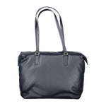 Elevate your daily ensemble with the eco-conscious edge of Tommy Hilfiger’s shoulder bag. A seamless blend of style and functionality, this chic blue carrier boasts twin handles poised for comfort, secure zip closure, and the iconic Tommy logo for that statement of designer prestige. Crafted from a sustainable mix of recycled polyester and polyethylene, it supports both your essentials and environmental awareness with ease.