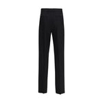 The formal wool Trousers by Versace reinterpret tailored elegance with a contemporary lightness. Crafted from fine grain de poudre wool, they follow the silhouette with a flawless slim fit. A tonal jacquard sartorial label on the back subtly but decisively signatures the design. The concealed hook-and-zip closure maintains clean, uninterrupted lines, while the side pockets and back welt pockets offer practicality infused with the refined sophistication that defines the Maison.