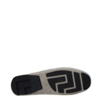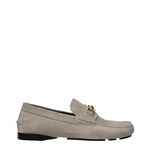 The product with MPN 10097071A042671E19V and code F83777 suede in gray is a loafers designed by Versace. It has features like front logo.