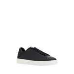 Calfskin Sneakers by Versace, featuring round toe, front lace-up closure, flat sole with iconic Greek embossed print, iconic monogram stamped press-stamped on back, press-stamped logo insole.