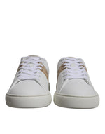 Gorgeous brand new with tags, 100% Authentic VERSACE white/brown leather two-tone design signature Greca detailing logo patch at the tongue almond toe front lace-up fastening platform sole.