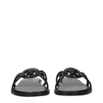 The product with MPN 1018364D2VE1B000 and code F84877 patent leather in black is a slippers and clogs designed by Versace. It has features like front logo.