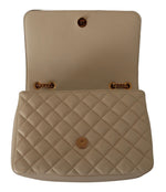 Details: Flap snap closure, medusa head logo, 1 main compartment, interior slip pocket, a gold-tone hardware with chain shoulder strap for shoulder or crossbody wear.
