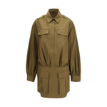 The Utility Mini Dress in poplin by 7 For All Mankind is a structured mini dress that blends character with femininity. It features structured shoulders and balloon sleeves with wide buttoned cuffs for a bold yet refined look. The front button fastening enhances its functional design. The silhouette combines soft volume with relaxed shoulders and sleeves, a defined waist, and a clean, streamlined skirt, striking a perfect balance between structure and lightness.