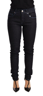 Acht Blue Cotton Low Waist Slim Fit Denim Women Trouser Jeans