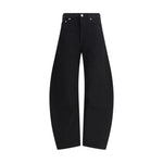 High-waisted Luna Pieced Jeans with a contoured leg and pieced design, made of lightweight, non-stretch, overdyed black denim for a modern, comfortable, tailored look.