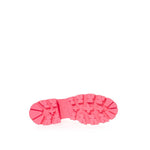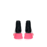 Alexander McQueen brushed leather Chelsea boots in black, tone-on-tone topstitching, contrasting fluo pink notched oversized flared sole, layered heel. Back tongue with printed logo, tone-on-tone elastic bands at sides. Composition: 100% Leather-Sku inside:23AP94-95
